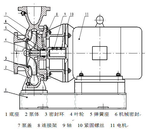 h.標(biāo)準(zhǔn)配置博格曼品牌機(jī)械式軸封,符合DIN24960,材料為碳化硅VS石墨,也可根據(jù)輸送液體和運(yùn)行條件的不同,提供其他形式的機(jī)械密封